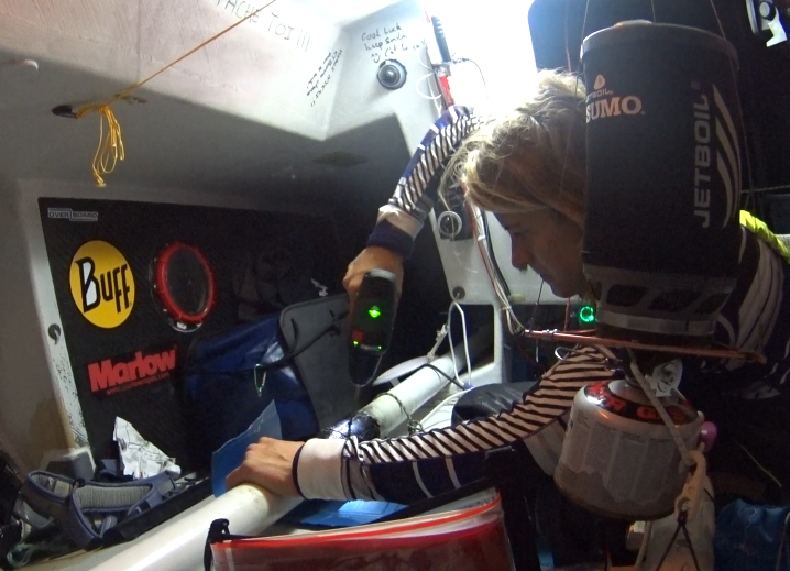 Time was passing slowly, I kept checking the pole, getting nervous, it wasn’t setting, even the remains of the epoxy mix in the vacuum pack hadn’t properly set, and those that had, created big lumps. Eughhh! I panic and start to double check the instructions, and realise that the epoxy had expired!!! Frustrated with myself that I hadn’t checked it, I looked through my repair kit to see what else I had and to see what my options were. I had my West Systems repair kit still, with plenty of epoxy and enough carbon and glass fibre to make the repair again. The problem was the old one had stuck enough to the pole that it was near on impossible to get it off to make a clean surface – and what if I had another problem later in the race that I’d need it for? My brain starts drumming through my options, so I decided to sleep on it and to have a look again in the morning in daylight. I spent the night, grabbing 30-minute naps and trying to eat as much as possible to get my energy levels up.