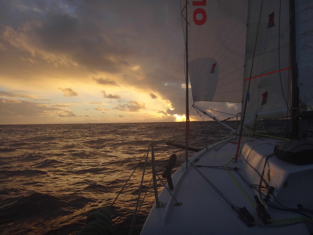 Once I’d gybed, the strategy was pretty simple, head slightly south of west, but don’t go too far south, if the wind dies go more south. The great thing about heading west is that you’re constantly sailing into the sunset, my favourite time of the day. For me this was really the best part of the Transat, every night as the sun goes down, enjoying the orangey yellow sky, spinnaker up, doing what I love, pure bliss. Then the sky lights up with stars, and quite often the moon, truly magical.