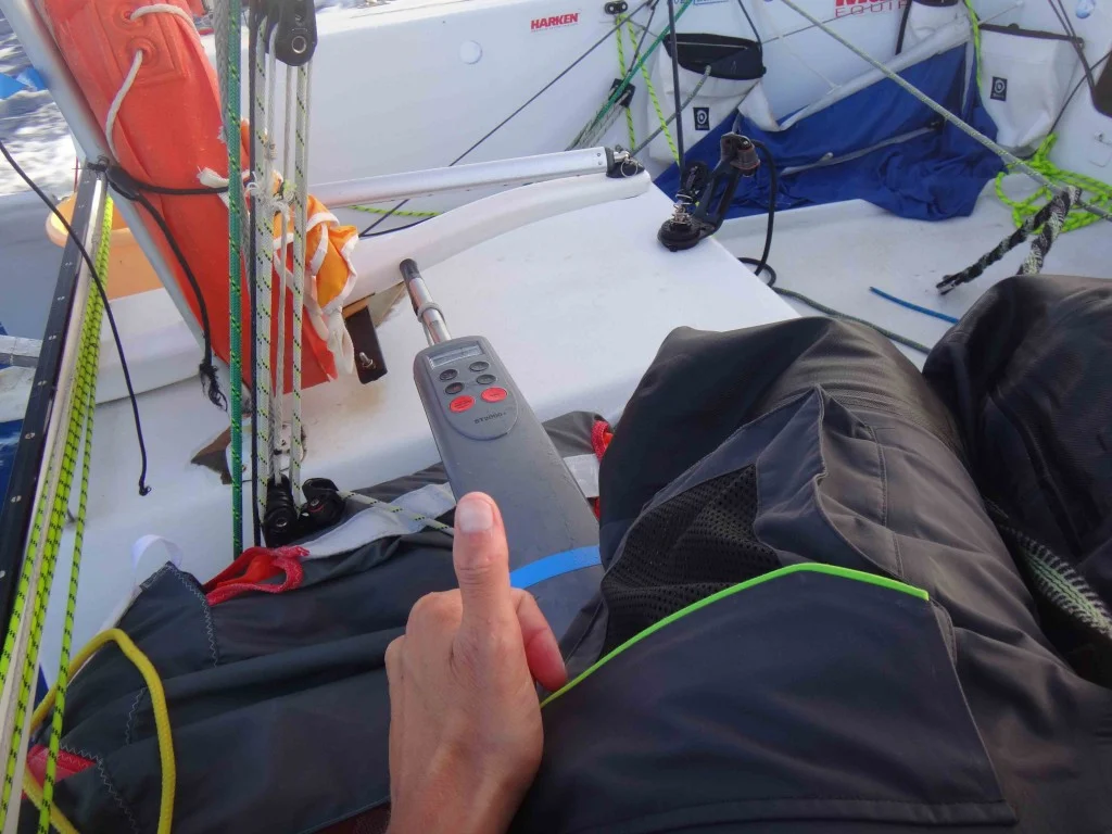 On board I had 4 different rams with me, so I swapped to a Raymarine ST2000, a standalone unit which runs solely off 12v and attaches directly to the tiller on deck, with it’s own compass built in.