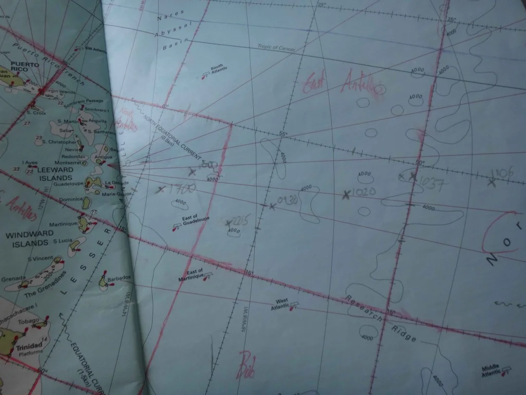 I tried everything to try get my main pilot working, I opened up the motor, thinking maybe there was a connection problem inside giving inconsistent power inputs/outputs or possibly even the motor having burnt out. I replaced all the wires and fuses in the system. Maybe it was the pilot’s clutch failing and turning on? So I tried disconnecting it altogether, nothing seemed to work. Next step was to take my spare ST4000 ram and attach it to the NKE system and see if that worked, but unfortunately I got the same problem, so I concluded it was the NKE computer, and a problem internally with the chip/settings. Just over 2,000 miles to Guadeloupe and I’m now relying solely on two ST2000 pilots on compass mode. This could be tough! With the waves being so confused and choppy the pilot was really struggling. I could set it to steer 260 and it would oscillate between 250 and 270, like a drunken man trying to walk down the street, it couldn’t keep a straight course but it would get me there, and that was all I needed. It meant I had to drop the kite if I wasn’t on the helm, or the boat would end up on it’s side or gybing, I was taking no risks now. I spent hours on the helm per day, and when not helming I was grabbing quick naps, listening to the meteo forecast, or eating.
